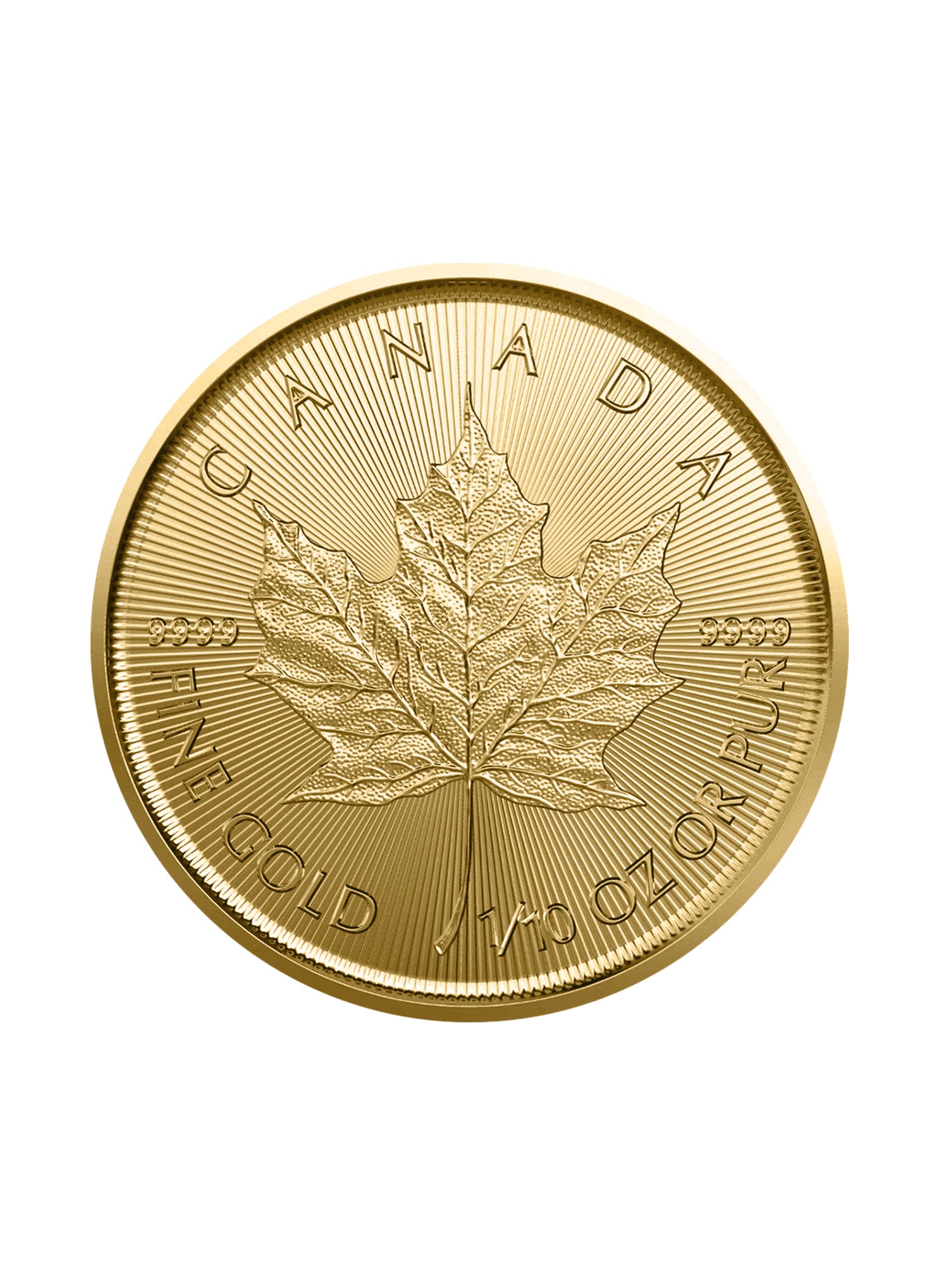 Das Ahornblatt im kanadisches Staatswappen ist Namensgeber der Maple Leaf Münze. Sie ist als reine Anlagemünze konzipiert und wird mit einer Feinheit von 999,9/1000 und einem zusätzlichen visuellem Sicherheitsmerkmal, dem lasergraviertem Ahornblatt, von der Royal Canadian Mint geprägt. Auch Details, wie die feine Struktur des Ahornblattes oder die seit 2015 eingeführte Gravur mikrometergenauer radialer Linien, tragen zum Schutz vor Fälschungen bei. Zusätzlich wird auf jede Anlagemünze ein mattes Ahornblatt eingraviert, welches die zwei Ziffern des Prägejahres in sich trägt. Deutlich zu erkennen ist diese erst mithilfe einer Lupe.