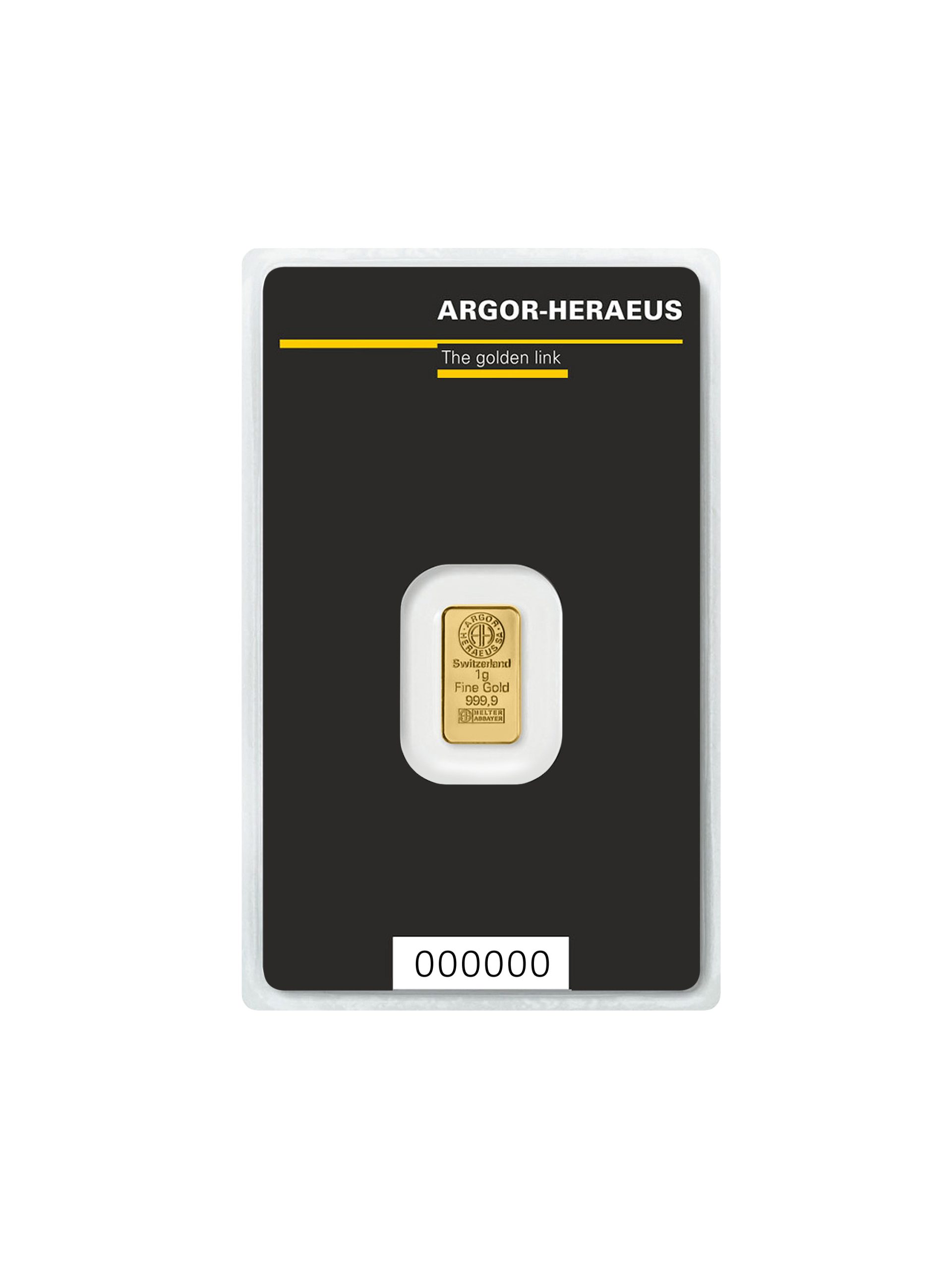 Der hier abgebildete 1g Barren besteht aus reinstem 999.9er Feingold und wird von der Argor-Heraeus SA hergestellt. Der Firmensitz befindet sich in der Schweiz, genauer gesagt in Mendrisio im Kanton Tessin. Argor-Hereaus ist Teil der Heraeus Precious Metals (HPM), die sich seit mehr als 160 Jahren in Familienbesitz befindet. Gemeinsam gehören sie zu den größten Herstellern von Goldbarren und anderen Edelmetallbarren in der Welt. Die 1g Goldbarren werden aus Goldblech ausgestanzt und anschließend geprägt. Sie sind LBMA zertifiziert, so das sie dem international anerkannten “London Good Delivery Standard” entsprechen und dadurch weltweit bankhandelsfähig sind. Die auf den Barren aufgeprägten einmaligen Seriennummern finden sich auch auf der Plisterkarte wieder. Auf der Rückseite des Plisters befindet sich zusätzlich das Zertifikat. Mit 55mm x 85mm ist der Plister so groß wie eine Scheckkarte.