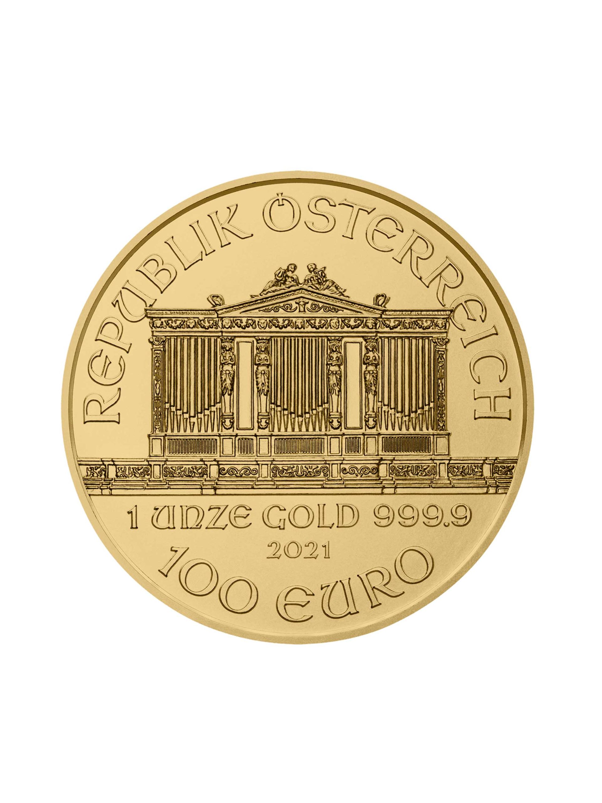 Erstmals erschienen ist die 1oz Wiener Philharmoniker Goldmünze 1989 als europäische Anlage Münze mit einem Feingehalt von 999,9/1000 und zu einem Nennwert von 2000Schilling.