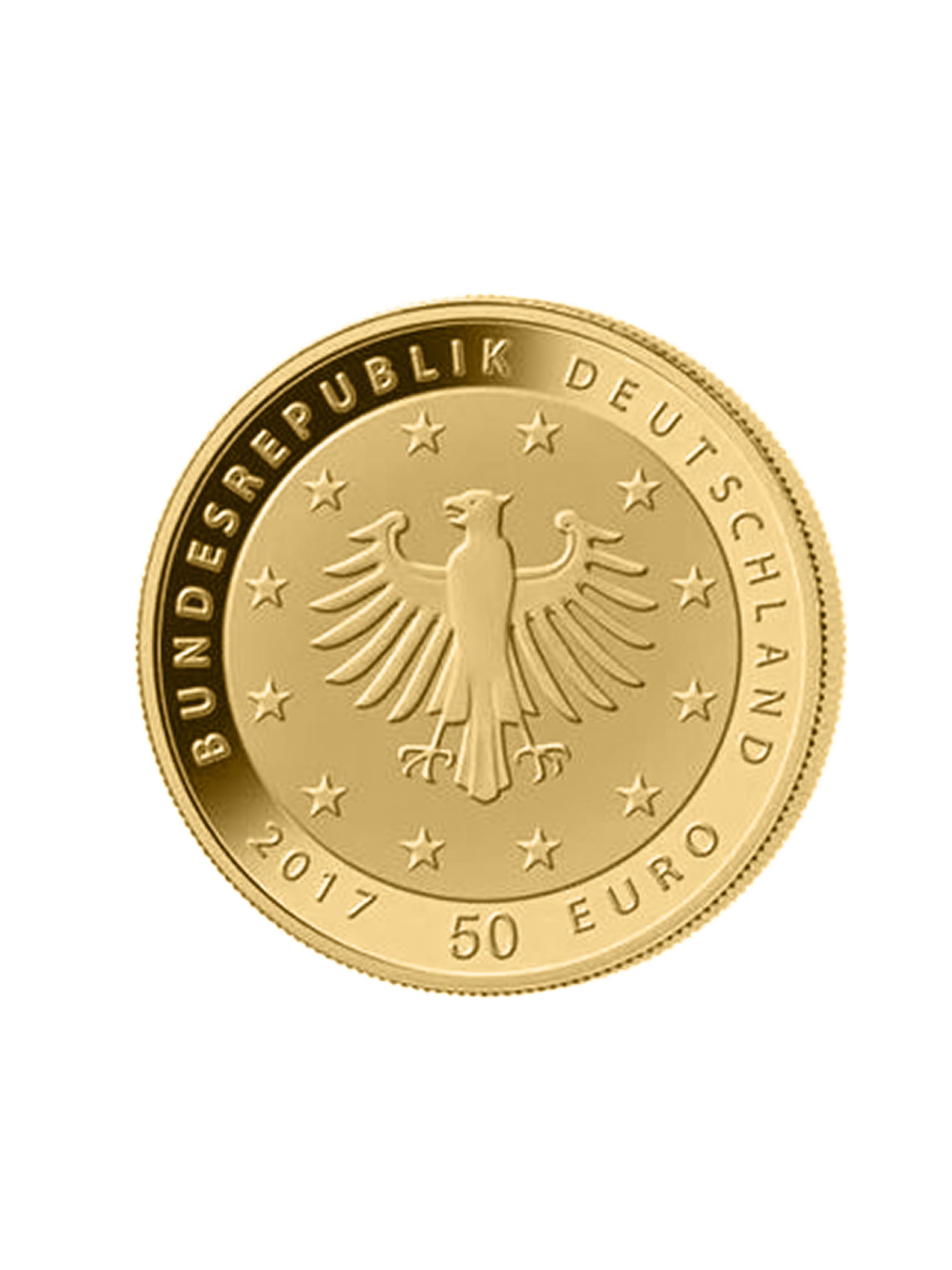 Die Wertseite zeigt einen Adler, den Schriftzug “BUNDESREPUBLIK DEUTSCHLAND”, Wertziffer und Wertbezeichnung, die Jahreszahl 2017, die zwölf Europasterne sowie – je nach Prägestätte – das Münzzeichen “A” (Berlin), “D” (München), “F” (Stuttgart), “G” (Karlsruhe) oder “J” (Hamburg).